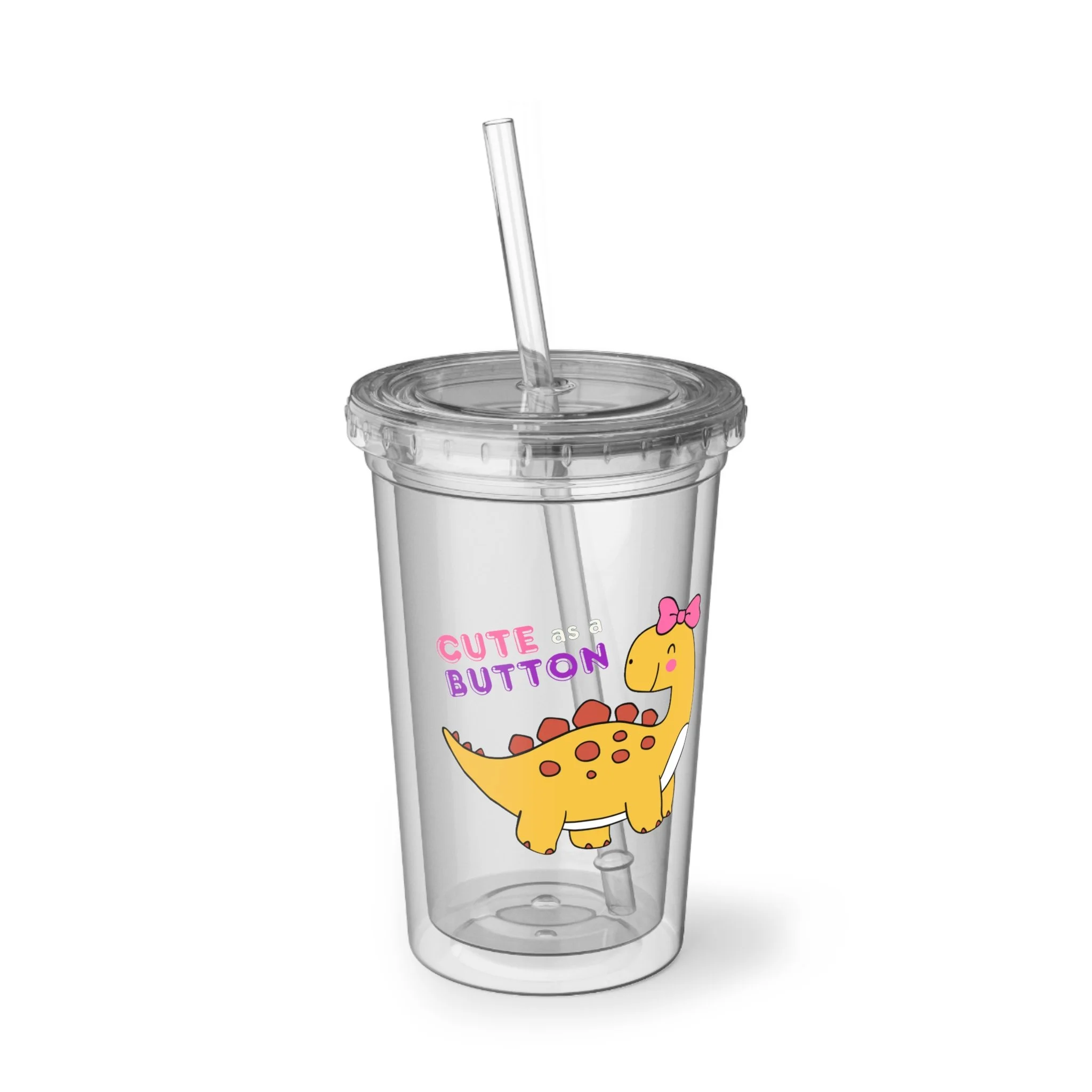 Acrylic Cup - Cute as a Button Dino Girl Tumbler, Kids Beverage Cup, Colorful Reusable Bottle, Fun Eco-Friendly Drinkware, BPA-Free Mug