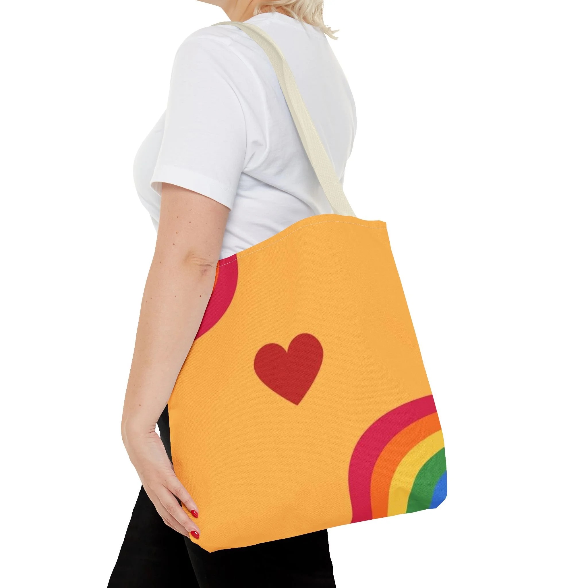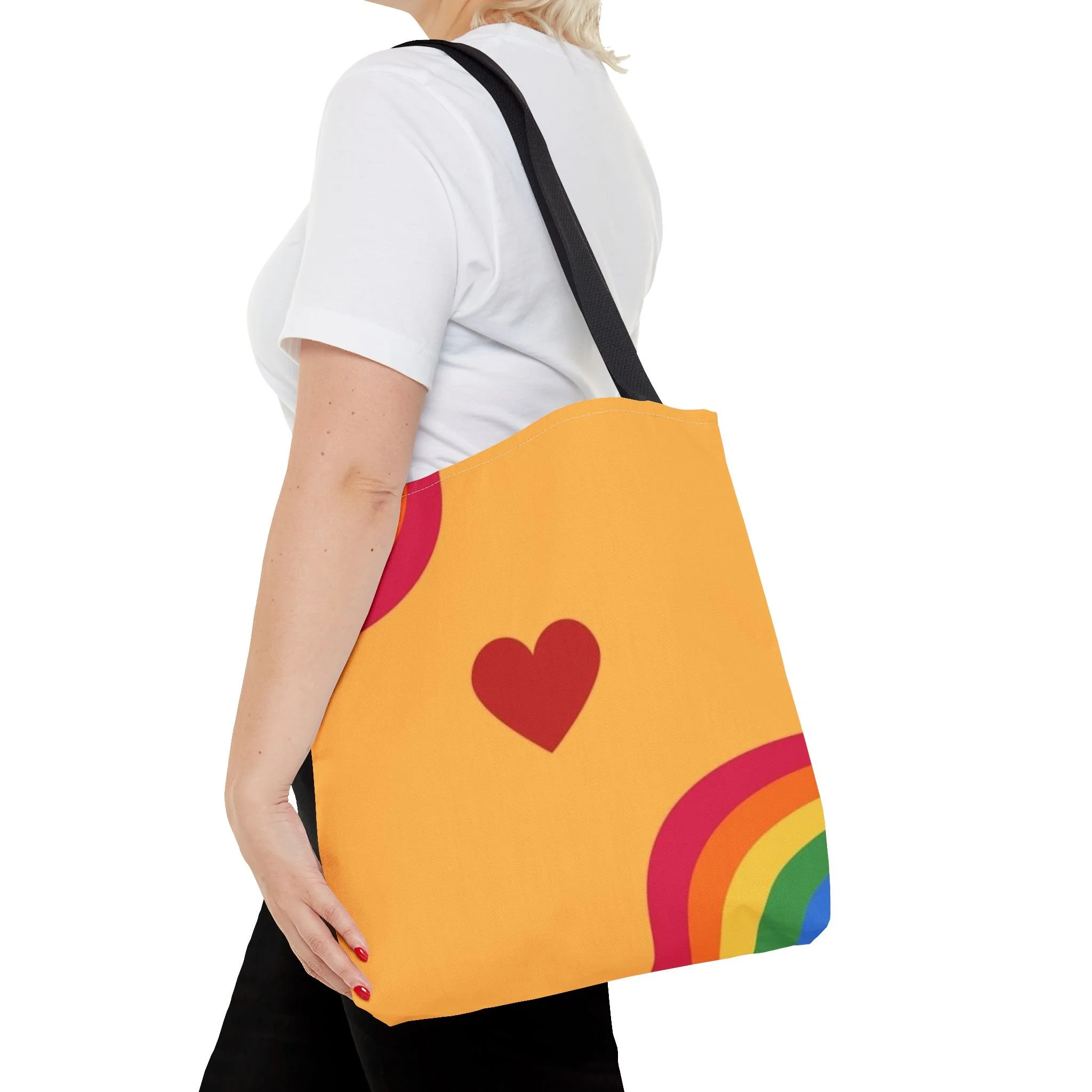 This vibrant tote bag is perfect for adding a splash of color to your everyday routine. Its cheerful design and bright colors bring a sense of joy and positivity, making it an ideal companion for trips to the market, beach outings, or casual gatherings with friends. With its spacious compartment and sturdy handles, it's great for students, busy moms, or anyone on the move. This tote bag is a wonderful gift for celebrations like birthdays, holidays, or just because you want to brighten someone's day!
