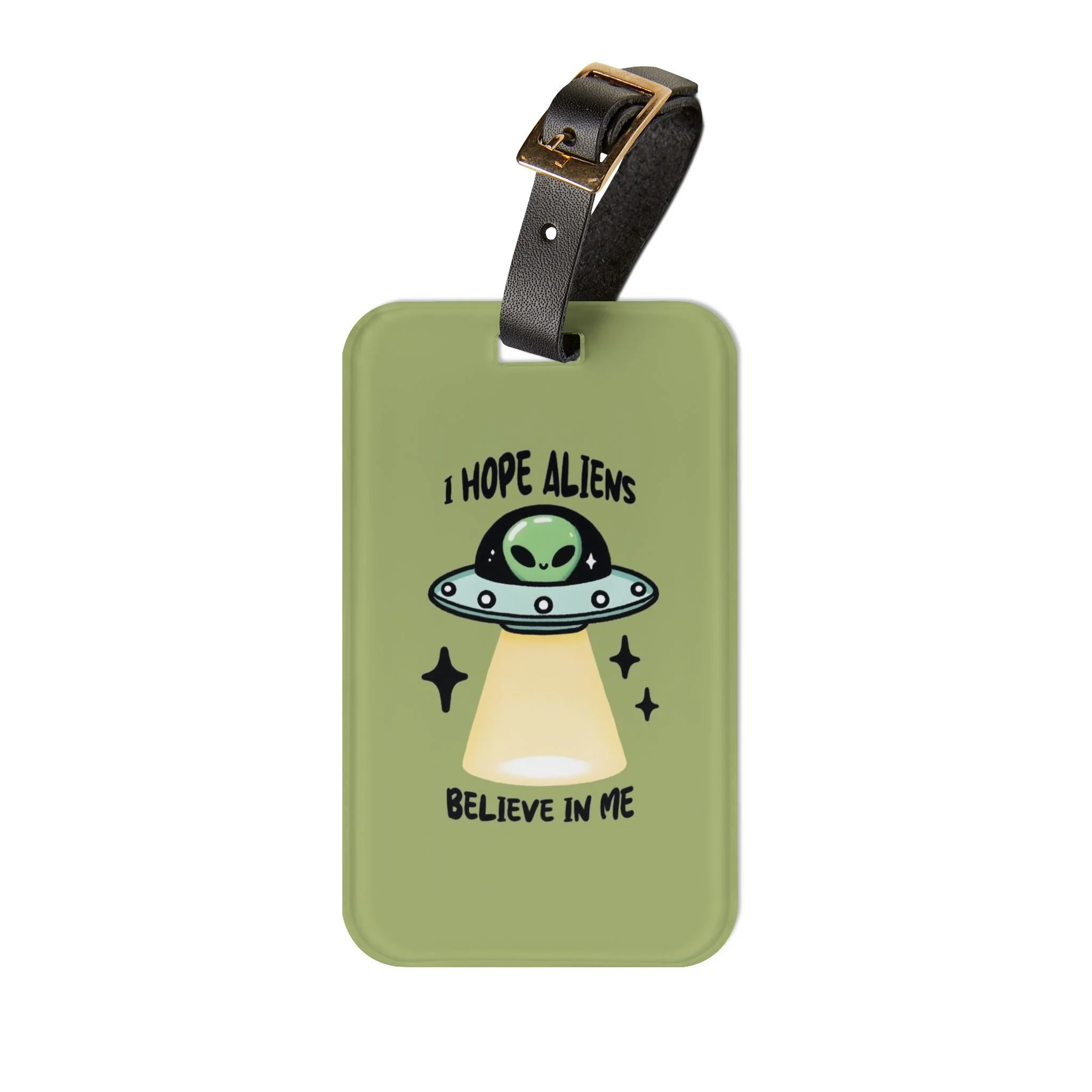 Funny Alien Luggage Tag, Travel Accessory, Personalized Bag Tag, Gift for UFO Lovers, Space Theme Travel