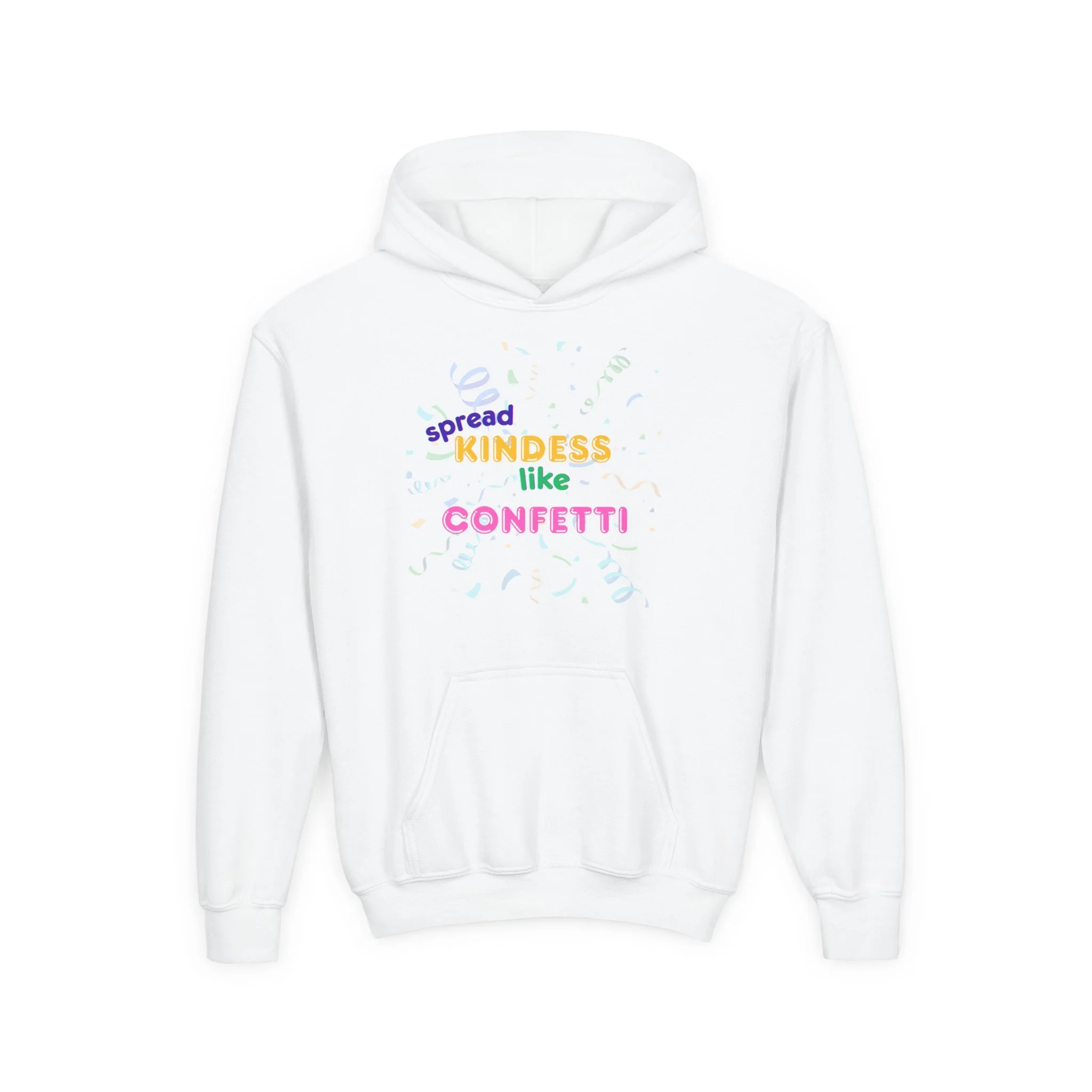 Stay cozy and spread kindness with this 'Spread kindness like confetti' hoodie. Perfect for children looking to stay warm and make a positive statement. Ideal for gifting during holidays, birthdays, and special occasions.