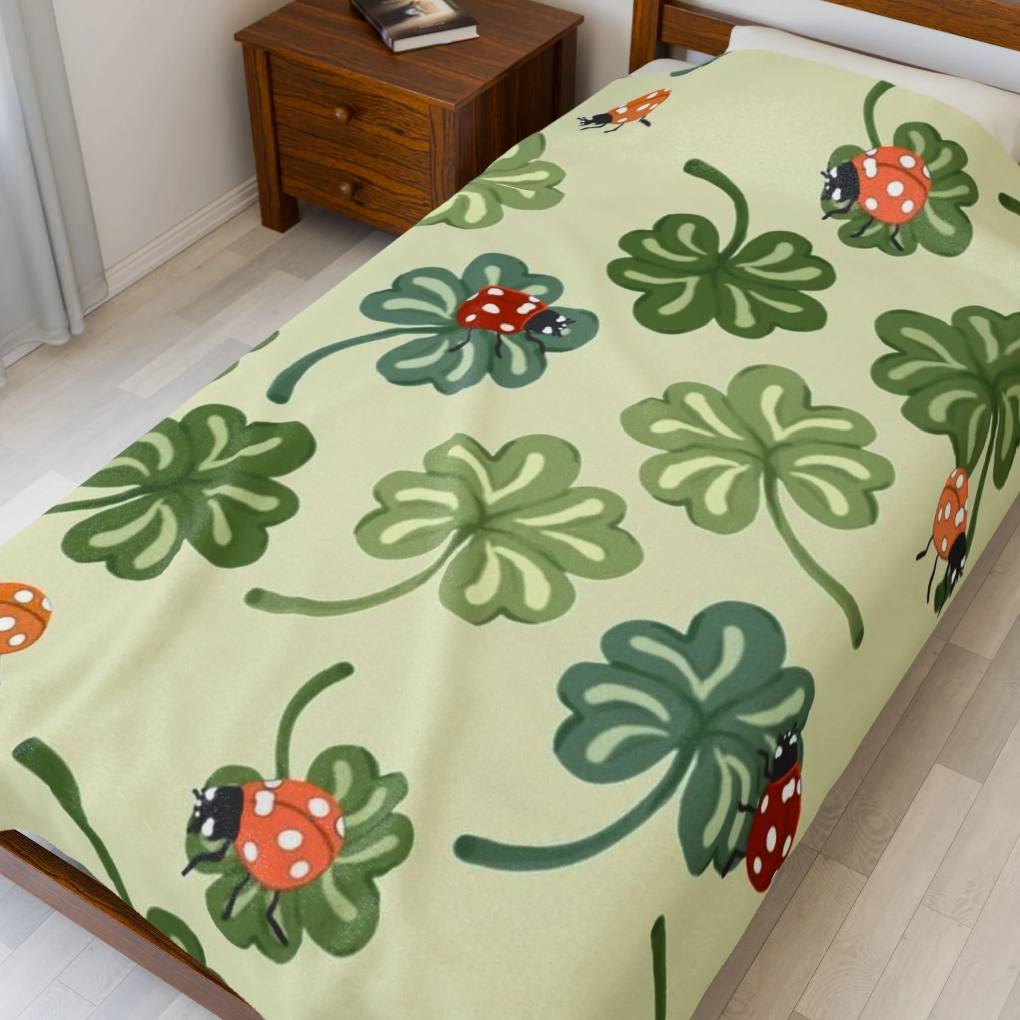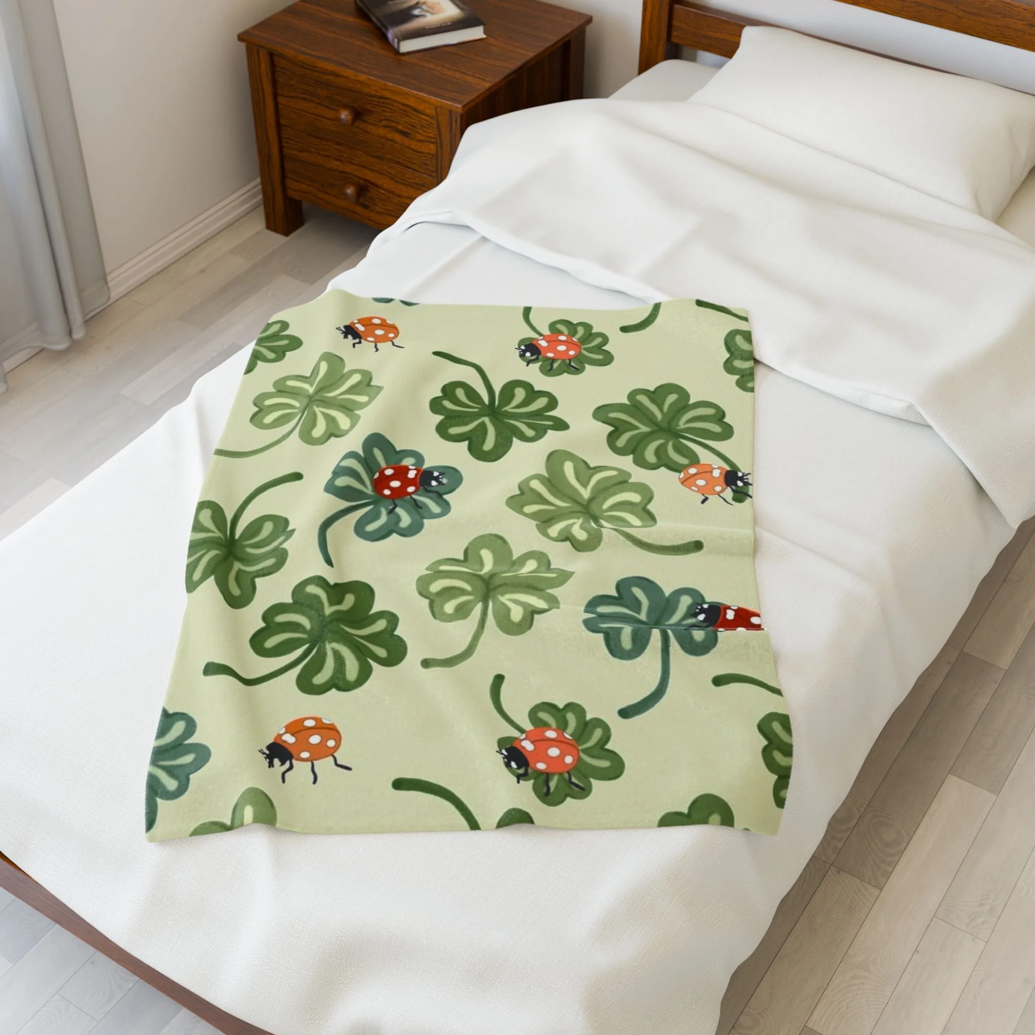 lady bugs and clovers Velveteen Plush Blanket