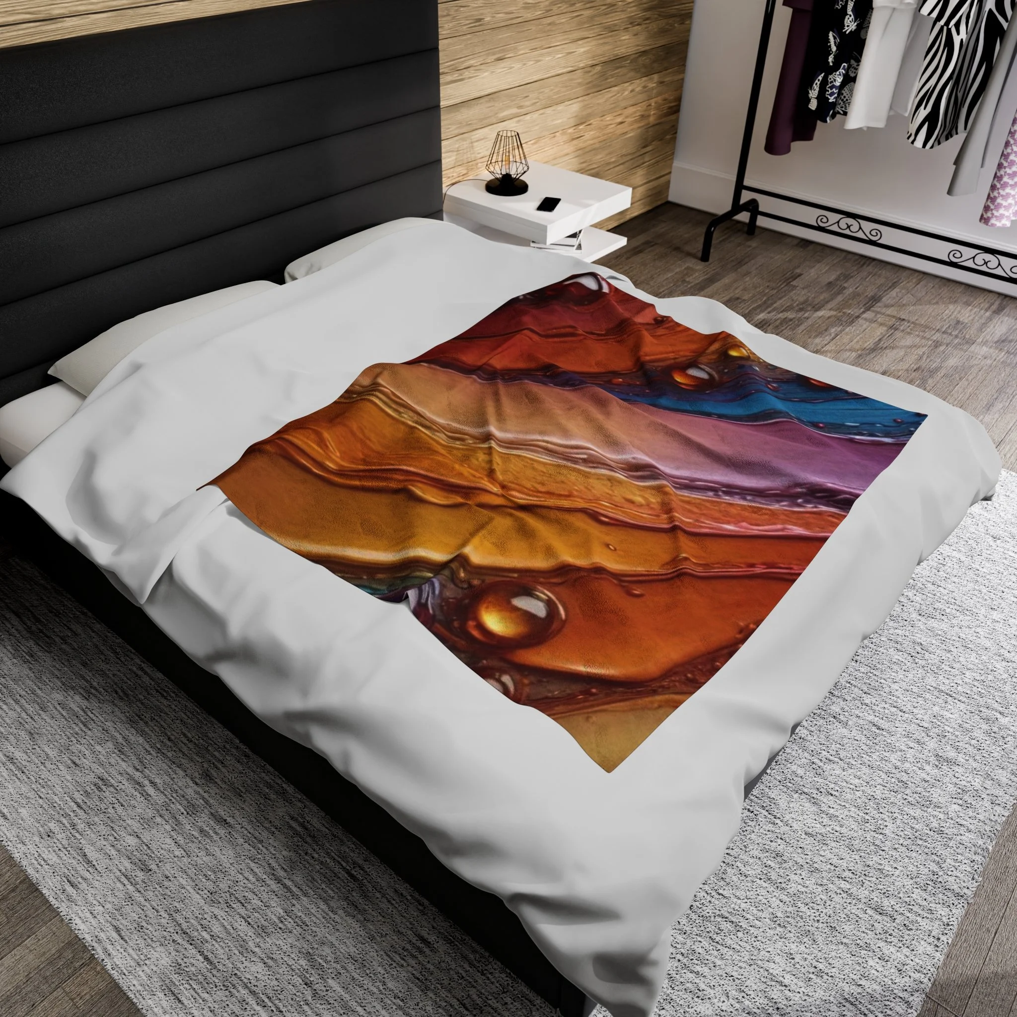 Create a cozy and warm atmosphere at home with this plush velveteen blanket. It is soft to touch and perfect for any home. Customize with a one-sided print to add your personal touch or create a gift for your friends and family. Available in three sizes: 30x40", 50x60", 60x80". NB! Due to variations in the production process, blankets may arrive up to 3" shorter than their listed size. .: 100% polyester (SPOKE) or 83% Polyester and 17% Spandex (Miami Sublimation) .: Your print goes on one side of the blanket in high detail and vibrant color .: Medium heavy-weight fabric (8.85 oz/yd² (300 g/m²)) that feels extra soft to the touch (thickness of the fabric may slightly vary)