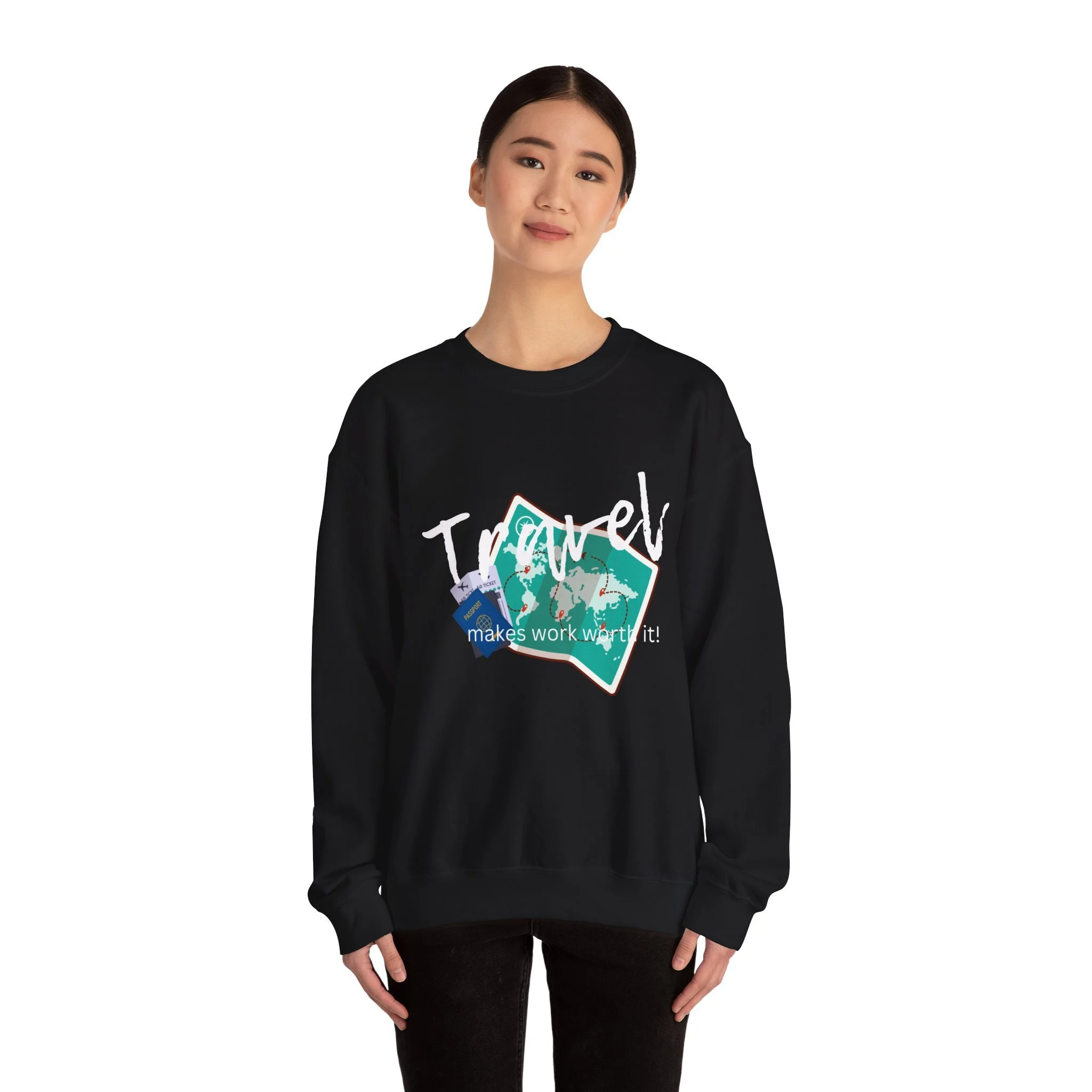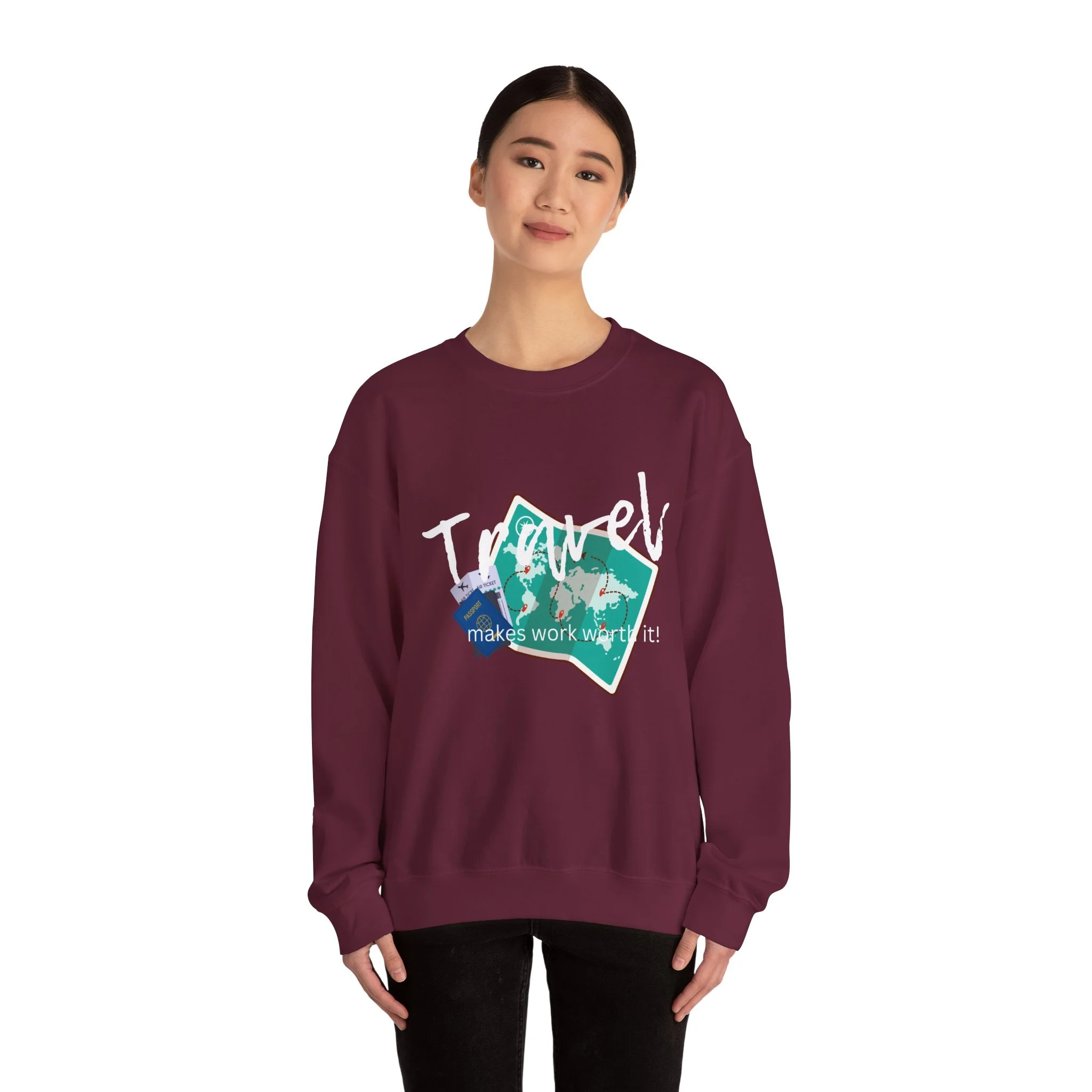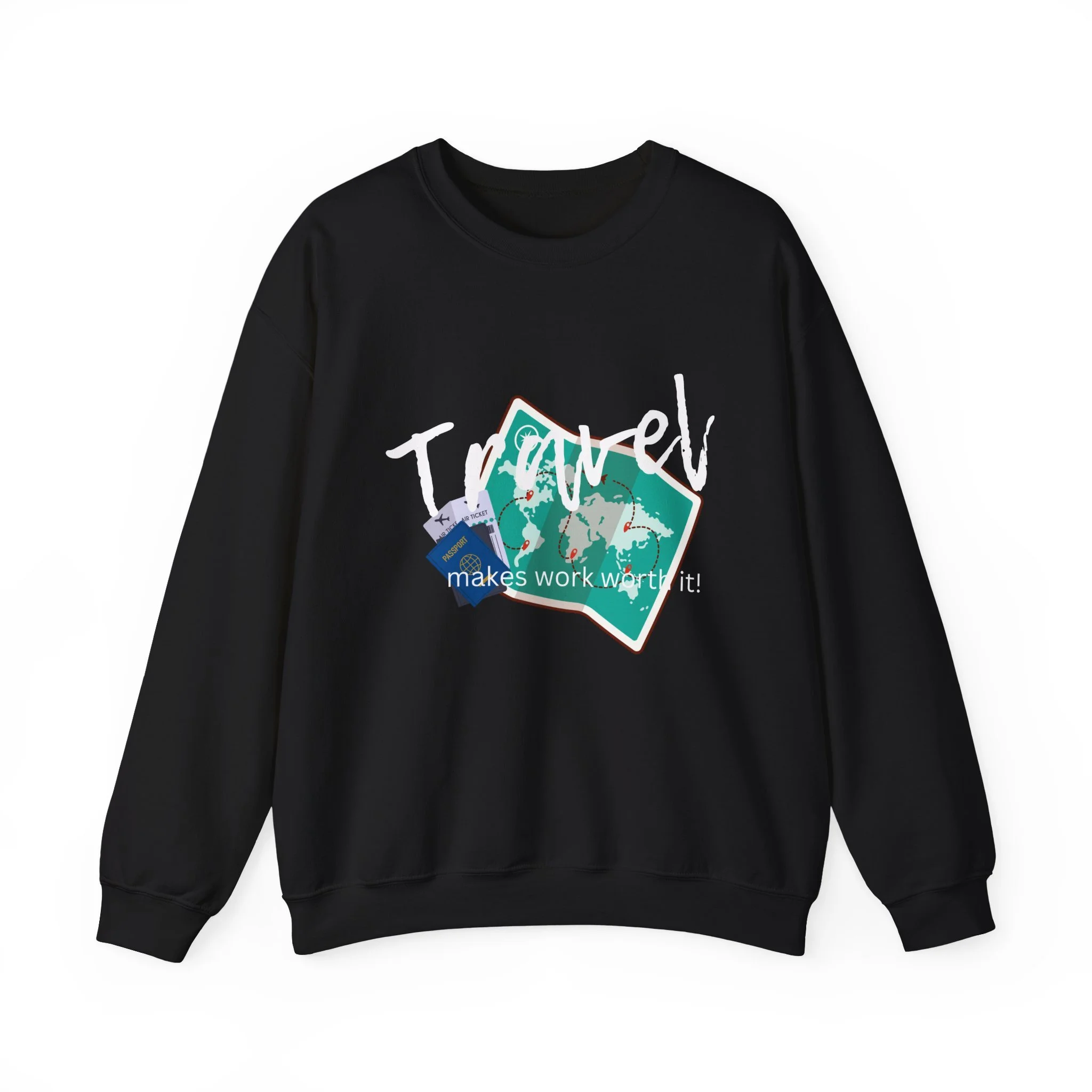 Travel the World Unisex Sweatshirt, Wanderlust Crewneck Jumper, Adventure Traveler Gift, Travel Makes Work Worth It Shirt, Explore the Globe