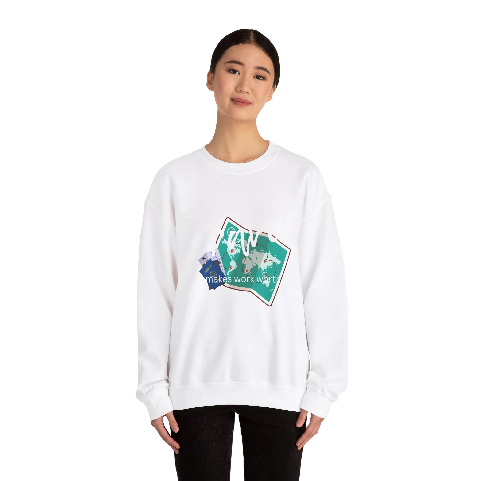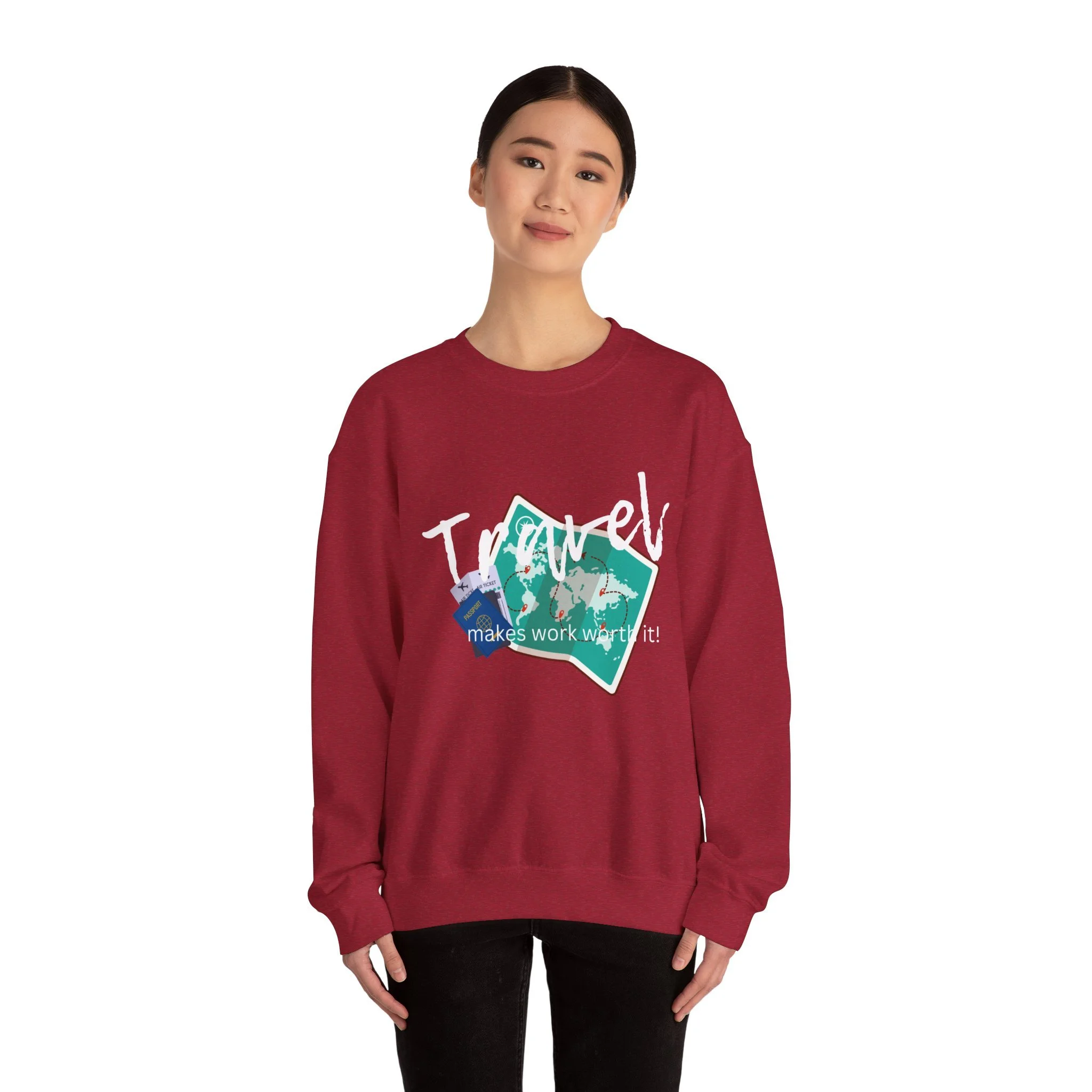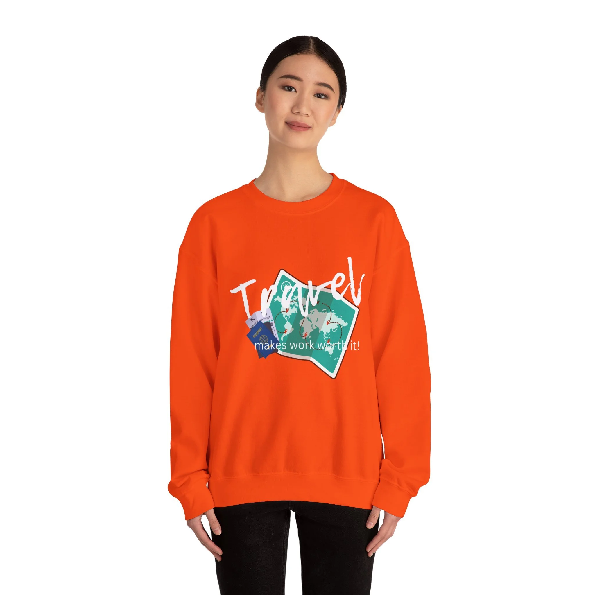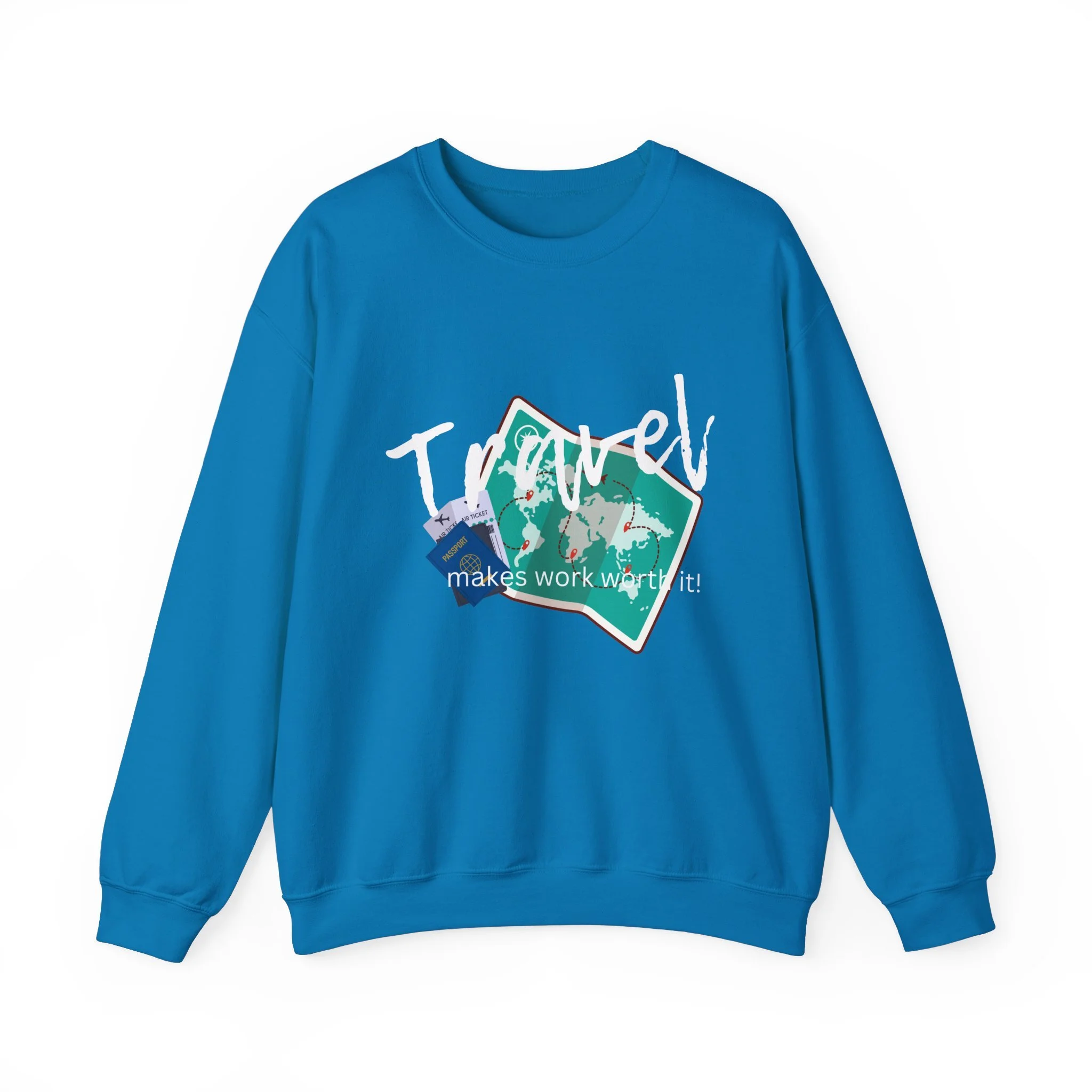 Travel the World Unisex Sweatshirt, Wanderlust Crewneck Jumper, Adventure Traveler Gift, Travel Makes Work Worth It Shirt, Explore the Globe