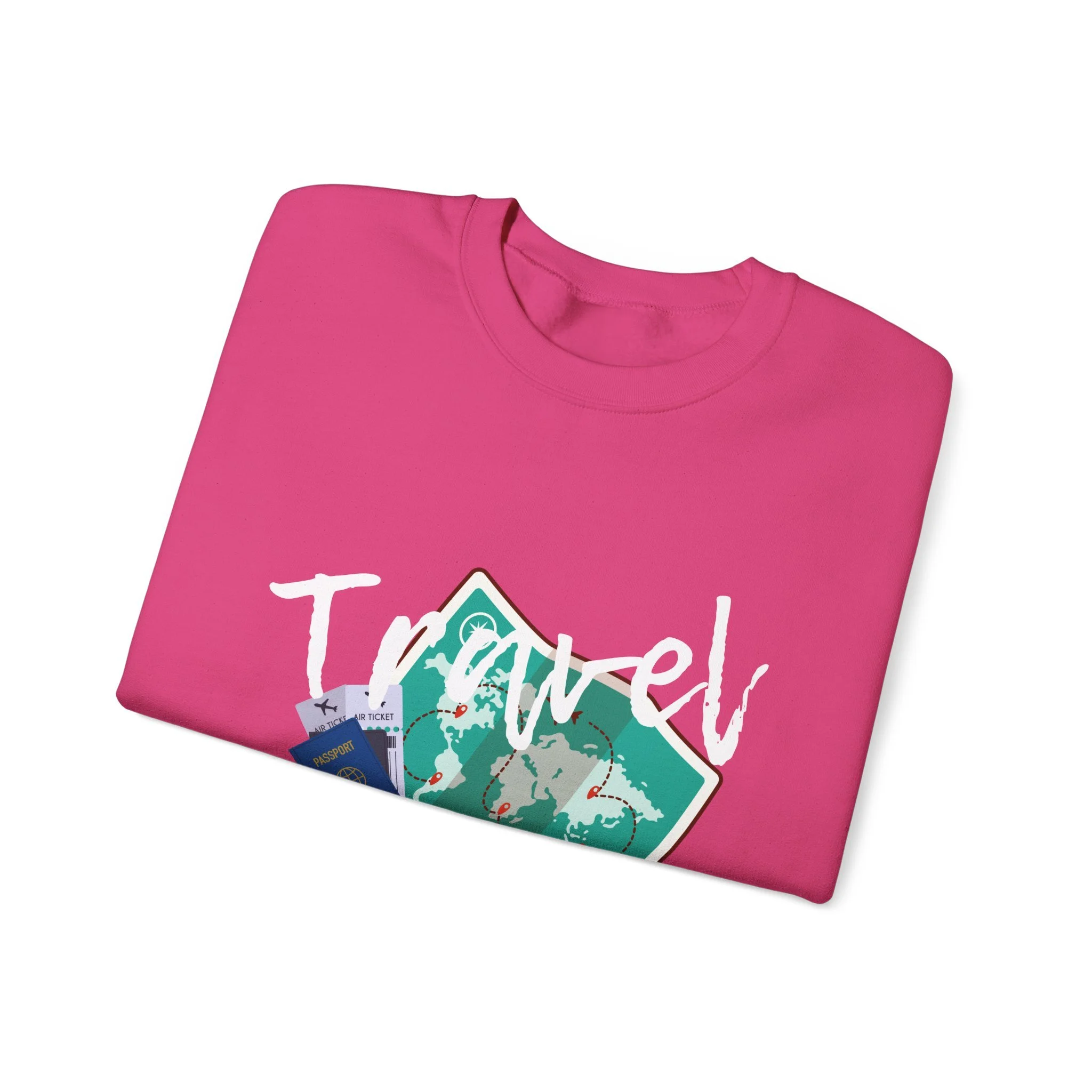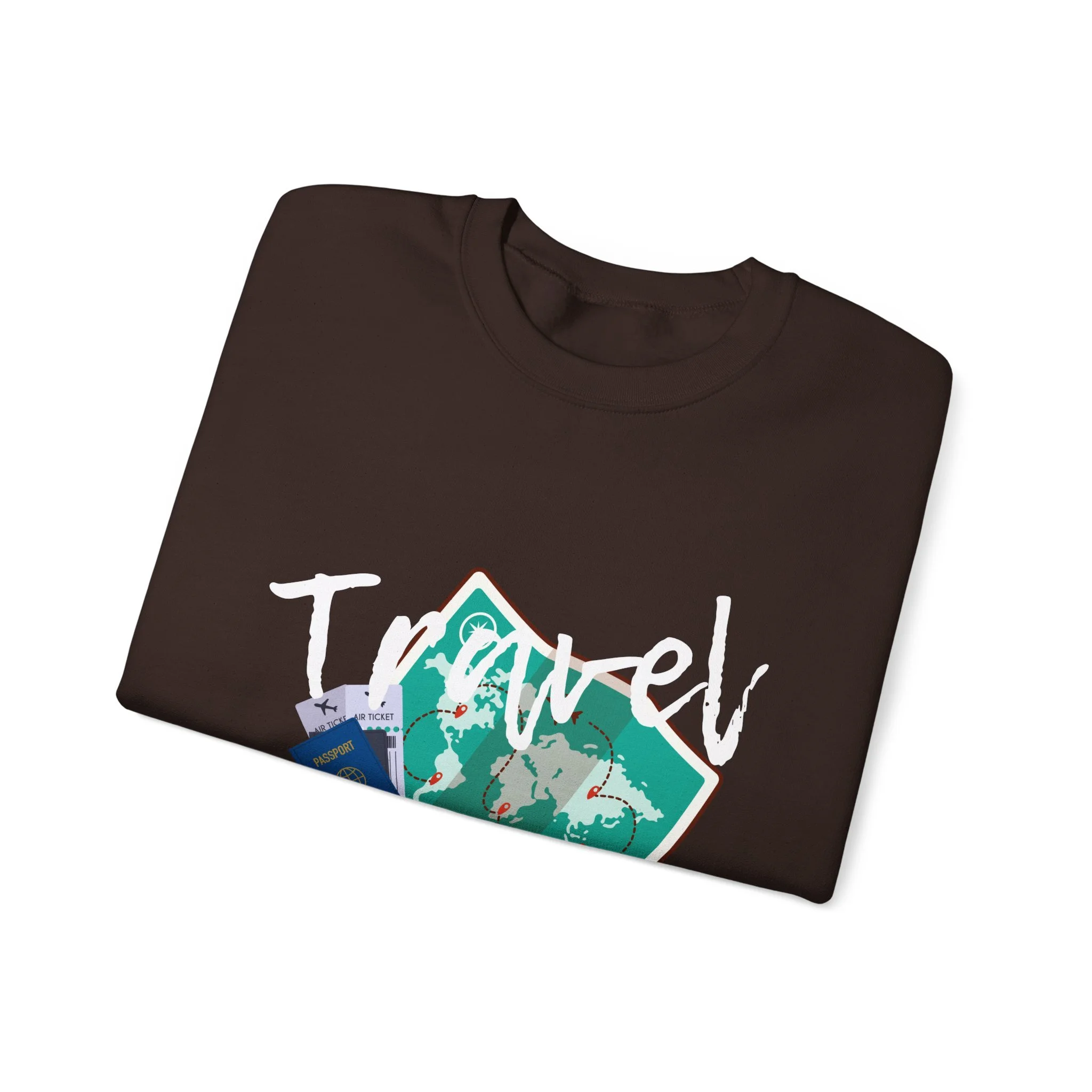 Travel the World on this cozy Unisex Heavy Blend™ Crewneck Sweatshirt. Perfect for those colder months, this sweatshirt offers a comfy wearing experience with a classic fit and crew neckline. The design exudes a sense of wanderlust and adventure, making it ideal for travel enthusiasts and those who appreciate the beauty of exploring different cultures. This sweatshirt is relevant for holidays like Christmas, New Year, and birthdays.